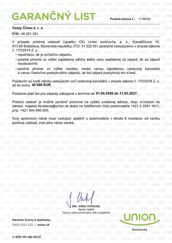 Cesty Čínou s.r.o.,pôvodný názov Bamboome s.r.o., je slovenská cestovná kancelária, konateľ je Pavel Dvořák, ktorá má uzavreté povinné poistenie proti úpadku.